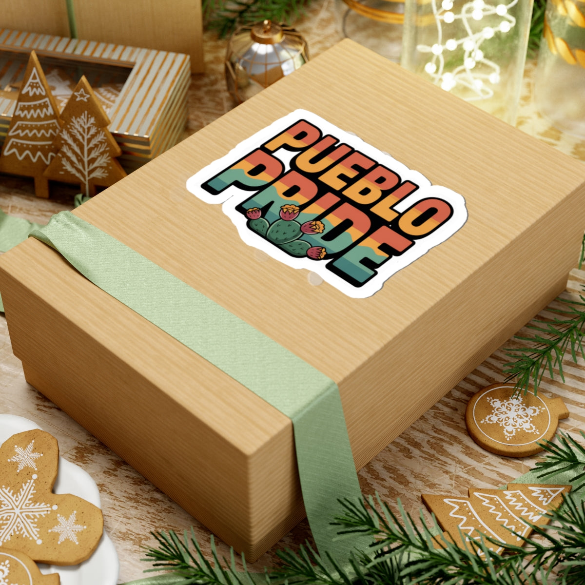 Show your Pueblo Pride with these vibrant southwestern colored kiss-cut stickers. Perfect for decorating laptops, journals, and windows. Suitable for adults and great for celebrating diversity and culture.