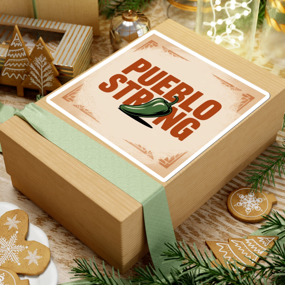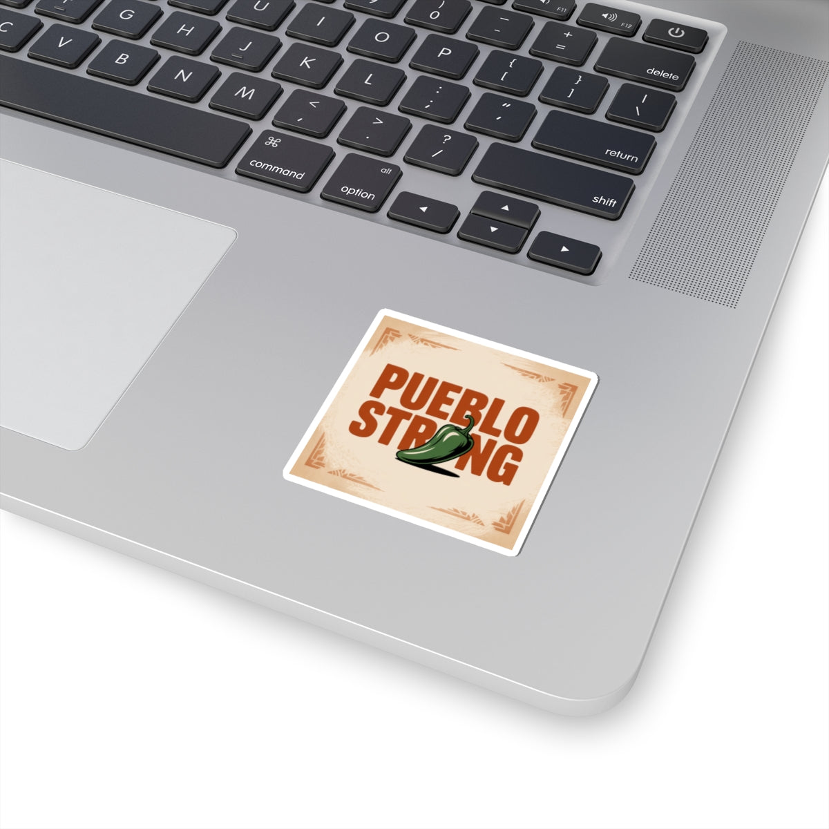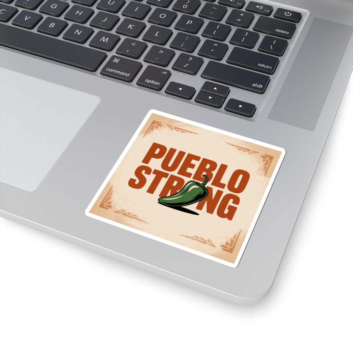 Pueblo Strong kiss-cut sticker featuring Pueblo Chile Pepper, Green Chile, and Pueblo Pride. Vibrant colors and glossy finish add a pop of color to laptops, journals, and windows. Perfect for adults who love Pueblo culture and celebrations like Pueblo Pride.