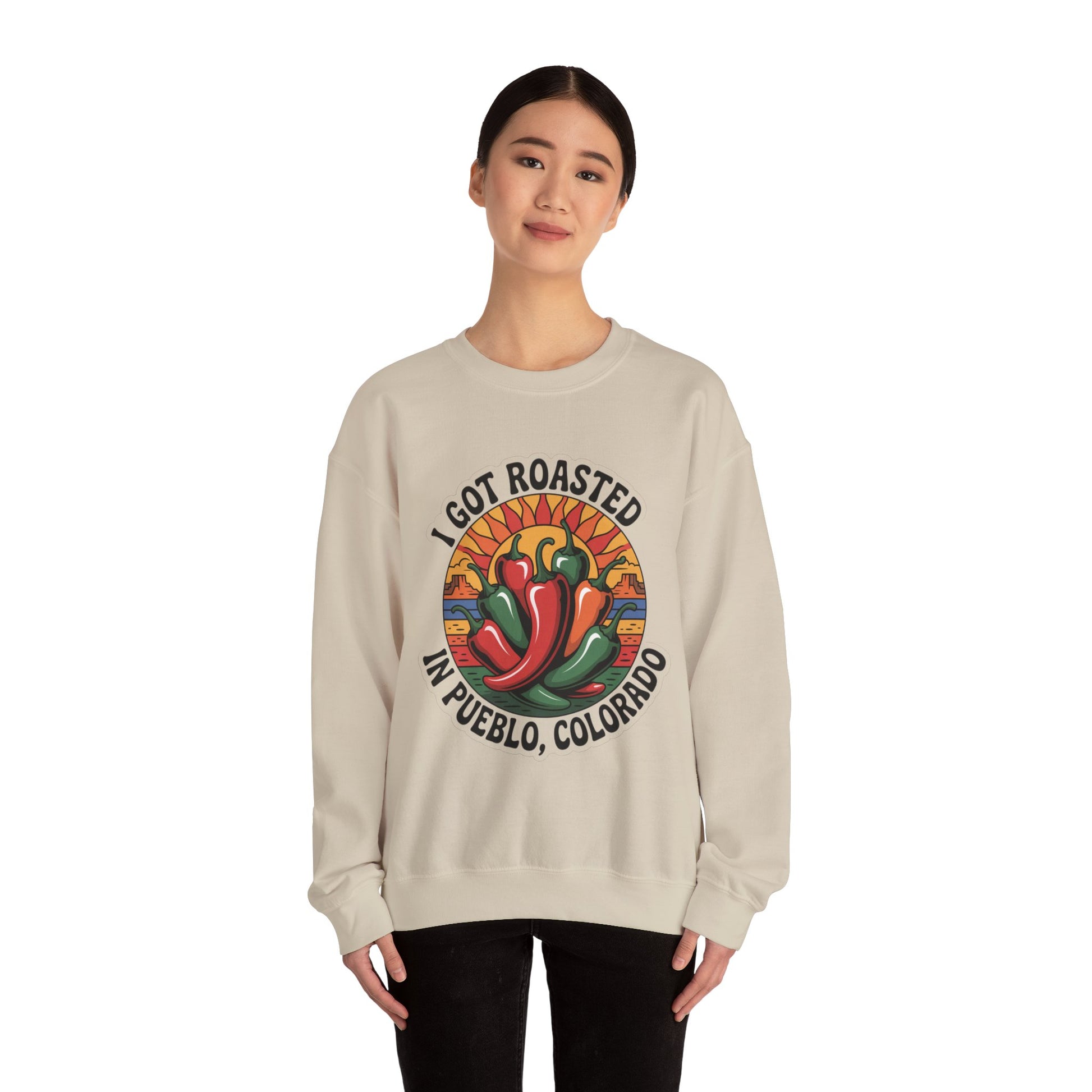 Turn up the heat with our "Pueblo Roasted Chilis" sweatshirt – a spicy nod to the annual Chili & Frijoles Festival! This unisex crewneck blends soft cotton with polyester for a cozy fit perfect for crisp fall nights or strolling the Riverwalk. The roasted chilis graphic will make fellow Puebloans smile.