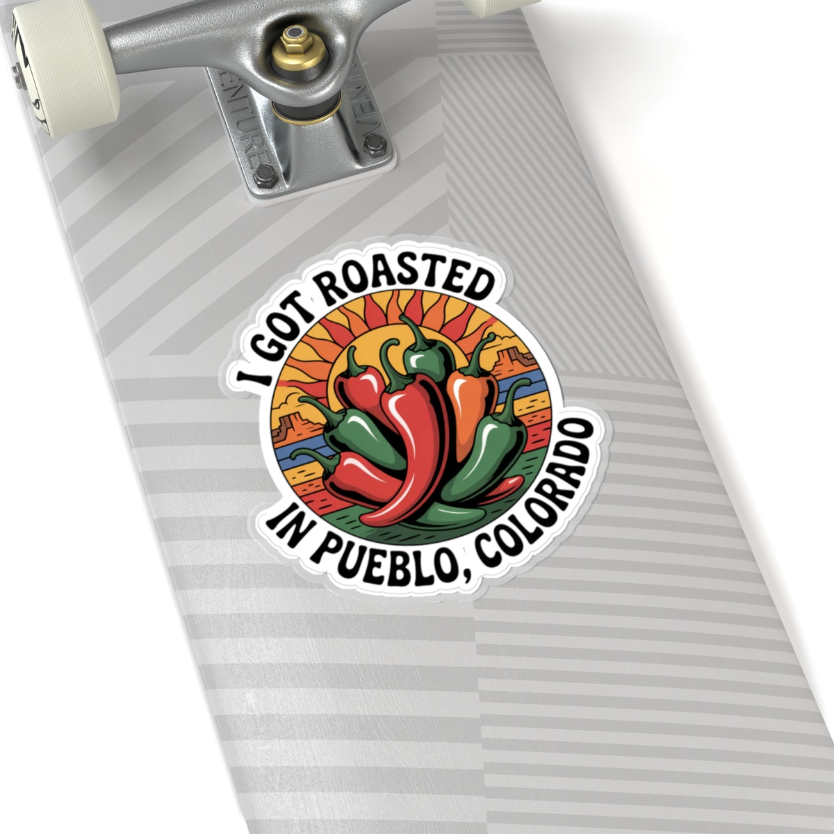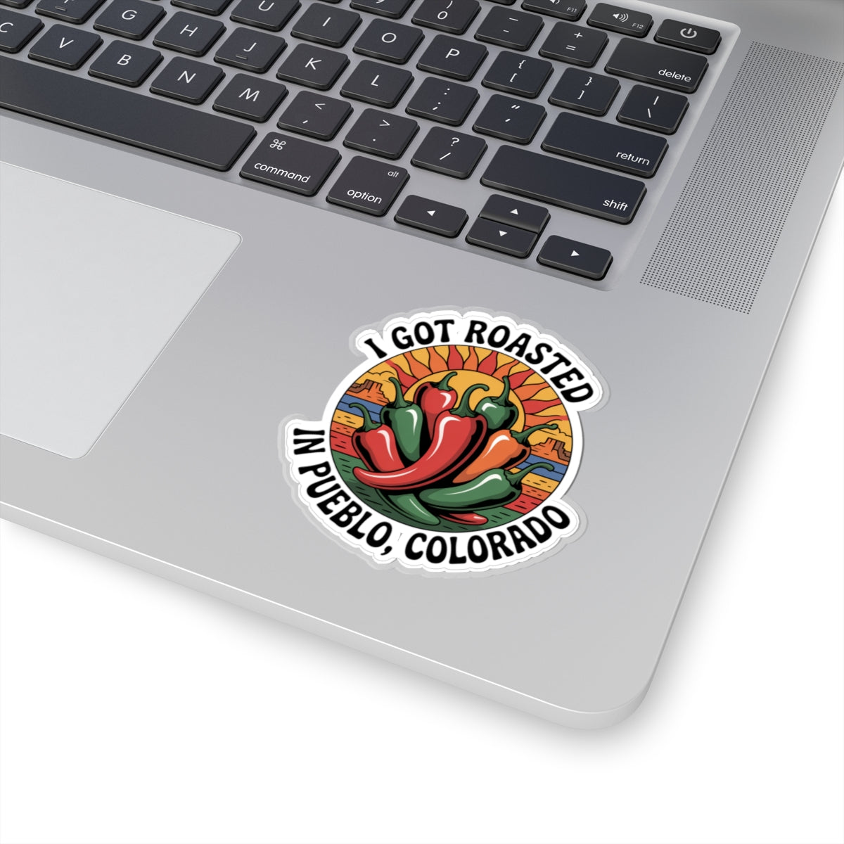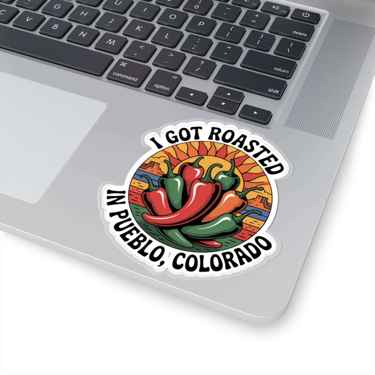 Travel Souvenir Sticker - Roasted in Pueblo, Colorado Kiss-Cut Sticker