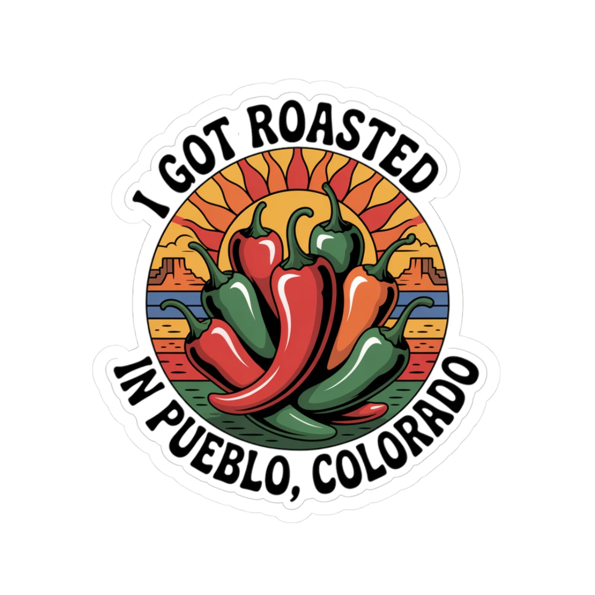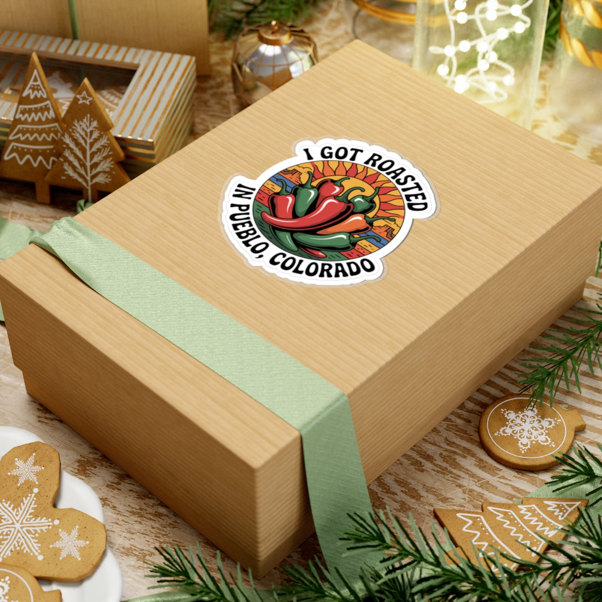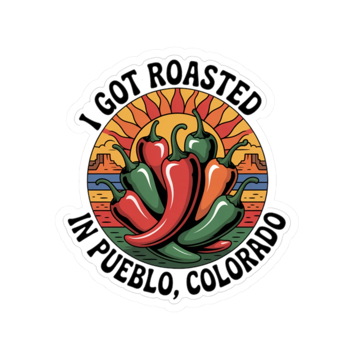 Travel Souvenir Sticker - Roasted in Pueblo, Colorado Kiss-Cut Sticker