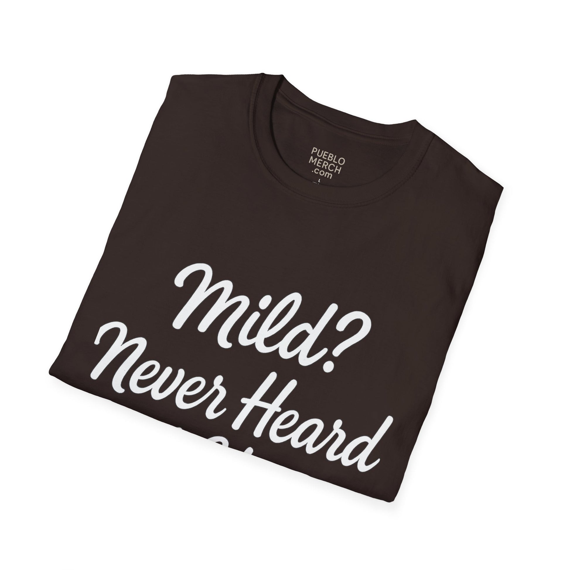 This unisex softstyle T-Shirt features a 'Mild Never heard of her' design with a chile pepper theme, perfect for those who love salsa and all things spicy. The southwestern vibe of the shirt gives off a fun and vibrant atmosphere, making it a great addition to anyone's casual wardrobe. Ideal for adults who enjoy adding a touch of spice to their outfits, this T-shirt is perfect for wearing during summer cookouts, Taco Tuesdays, or any casual weekend hangouts.